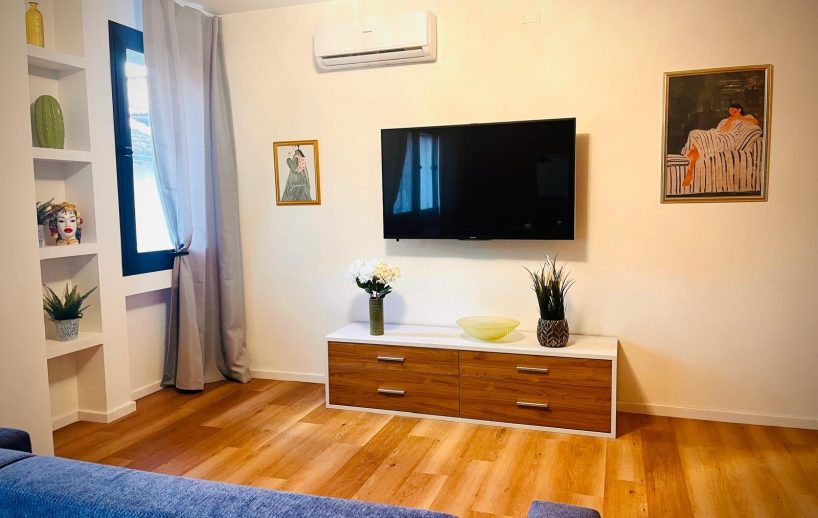 All’ingresso troverete un bellissimo specchio a muro ed entrando nella zona giorno sarete travolti dalla luce naturale esterna grazie ad ampie finestre. Questo ambiente open space è ampio e accuratamente disposto per permettere di viverlo anche come camera da letto aprendo con un solo gesto semplice il divano letto matrimoniale.