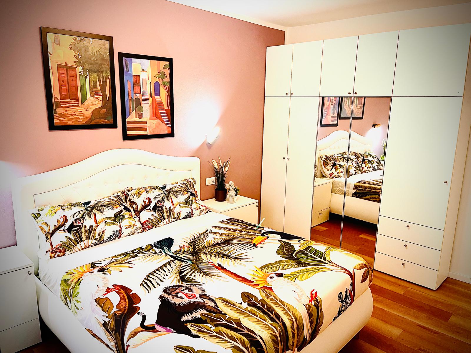 La camera da letto matrimoniale dispone di un comodo armadio ben attrezzato, di un televisore a schermo piatto oltre che ad un condizionatore (presente anhe nella zona giorno) di ultima generazione.